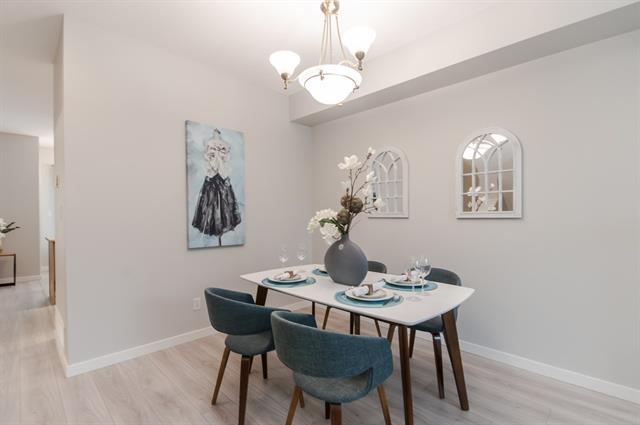 Beautiful ” LEIGHTON GREEN ” built by Polygon. This south facing corner unit has 9′ ceiling on the main floor with spacious & open living/dining areas, features 4 spacious bedrooms, 3.5 bathrooms and a double side by side garage with one open parking space! Very spacious living space over 1,945 sqft with a big balcony and efficient layout with natural lights. New paint, new flooring. Three bedroooms upstairs and a fourth bedroom downstairs with full bath and big south facing window.Safe and well managed complex, nice & quiet neighbourhood with ample visitor parking. Walking distance to schools, parks, shopping, transit. School Catchment : Garden City Elementary and Palmer Secondary. Excellent opportunity, Must see!